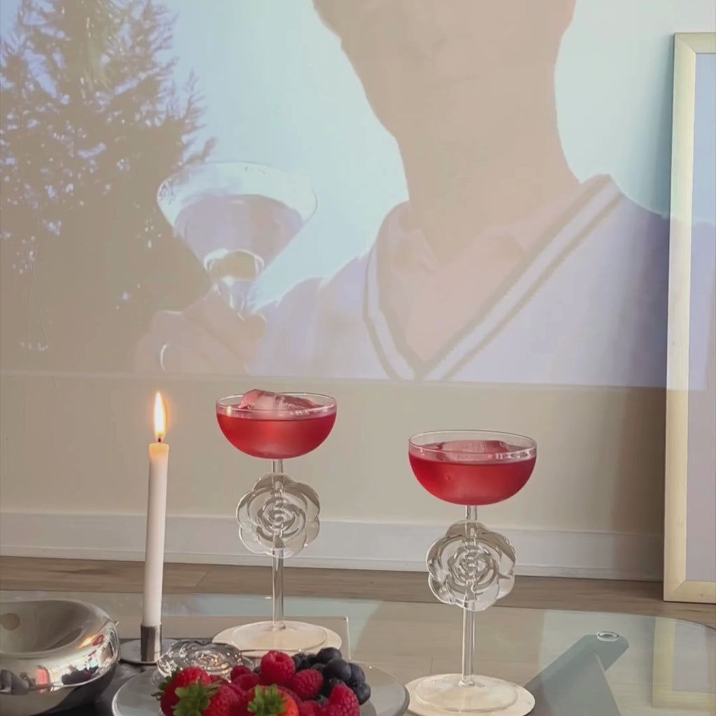 Elevate your sipping experience with our beautiful Rose Coupe. These elegant cocktail glasses are carefully made and feature a charming rose design that makes every drink look even better.